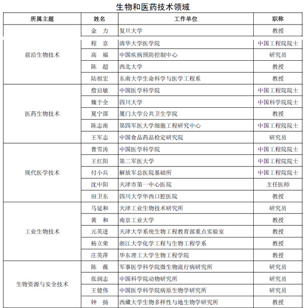 十二五863计划主题专家组成员建议名单之生物和医药技术领域,点击查看大图。