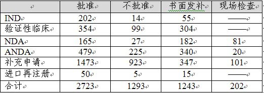2012年,药品审评中心完成审评并呈送国家局审批的审评任务4941个,其中批准3323个,不批准1618个。2012年药品审评中心受理量和完成量比较相差约2000个,主要集中在化学药品。