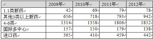 表3表明,近年来1.1类申报量基本维持在70个上下,3类新药每年增加近百个,国家鼓励创新的政策在药品申报结构上开始初步显现。