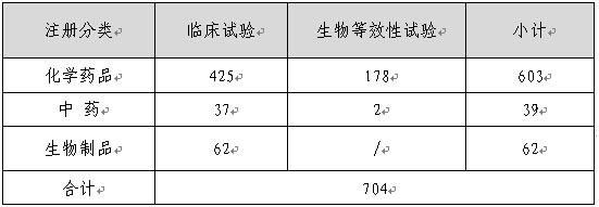 图1显示,各年度总体受理量在6500-7000个之间波动,其中近两年略有增加。2012年,化药受理量略有升高,中药受理量小幅下降,生物制品基本持平。几年来,化药的受理量基本保持在各年度受理总量的80%至85%。