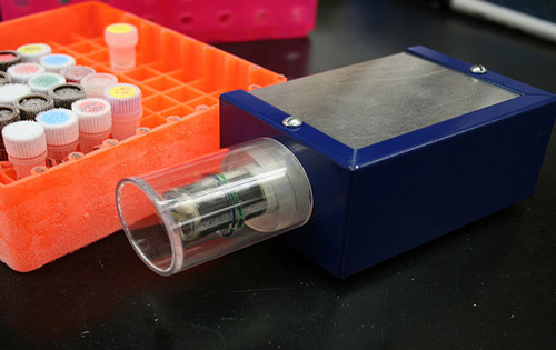 LavaAmp 可能是世界上最小的链式反应仪——能快速复制 DNA 的最基本的生物技术设备。链式反应仪可以规律地升高和降低机器内的温度,从而使聚合酶链式反应——也就是 PCR ——得以进行。这个反应的发现以及如何控制这个反应,是1983年基因工程发明后真正能够应用于工业规模的基础性成就之一。 PCR 的能力不仅仅是可以复制 DNA ,它还能让研究者复制特定的 DNA 片段。只要生物技术员知道如何配制合适的试剂,他就能用链式反应仪在短时间内合成大量他们想要剪接的基因。生物技术药物、转基因作物和合成生物燃料都需要 PCR 反应,这是制造过程中最基本的环节。长久以来,链式反应仪对所有基因工程项目都至关重要。