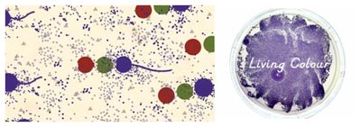 除了冲击感,艺术的“基因”之一还有美感,比如下面这幅彩色的大肠杆菌图(合成生物学技术的一种)。人体中的微生物千千万万,或许早有生物学家们腻烦了在显微镜下看到的非黑即白的画面。假如有一天,不同大肠杆菌是不同的颜色,是不是预示着未来的众多可能呢?比如致病细菌呈不同颜色,医生就能轻易分别患者所患疾病。