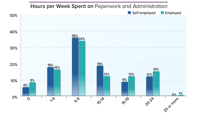 根据今年的调查数据,无论是打工还是单干,约40%的肿瘤科医生每周会花费至少10小时来处理文书和管理方面的工作,而这个数据也是显著高于所有专业的医生(35%的受雇医生和26%的单干医生)。