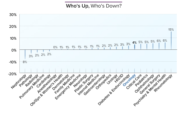 肿瘤科医生比去年同期的收入增长约4.3%。总体来讲,2012年和2013年差异较小。