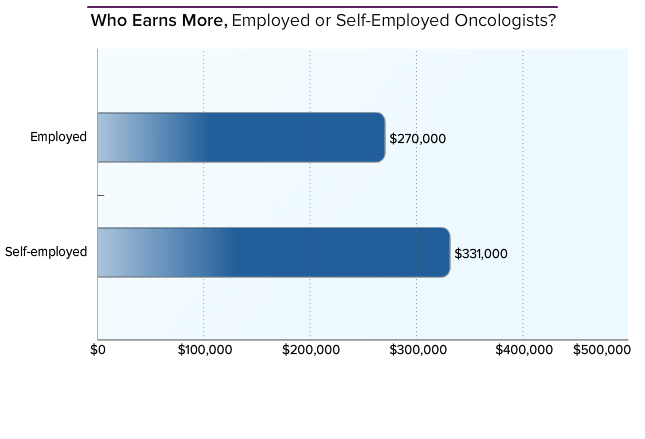 在此次调查中,单干的肿瘤医生的收入超过那些受雇的肿瘤医生(分别33.1万美元美元和27万美元)