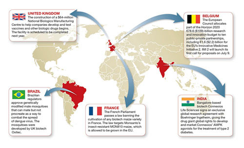 法国:法国国会通过一项法案,禁止种植任何转基因玉米品种。该法案直接针对孟山都公司推出的抗虫MON810玉米,而这一玉米实际上已经得到EU授权种植。