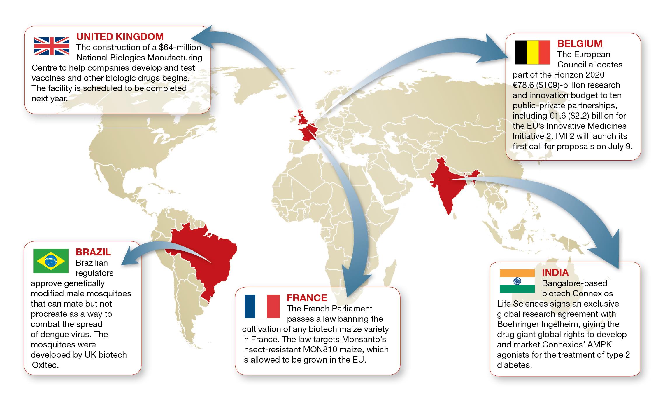 巴西:巴西监管机构批准了基因工程化雄性按蚊以抵抗登革热病毒的传播。英国生物技术公司Oxitec开发的这种基因工程后的按蚊可成熟但是不能生殖。