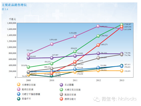 仁澳(主要用于治疗癫痫)、卓澳及必澳(均为呼吸系统药物)的销售额保持稳定增长。仁澳的销售增加6.9%至人民币14.6百万元,卓澳及必澳的销售额则分别增加22.4%及减少1.0%,收益合共为人民币69.9百万元。洛安命(新陈代谢药物)因其独家配方录得销售额增加25.3%至人民币72.9百万元。由于临床使用抗感染药物受到更严格的限制,颇佳的销售额下跌12.6%至人民币31.1百万元。于二零一三年下半年推出独家首仿新药罗沙替丁。