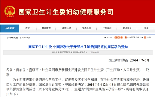 我国婴儿死亡率在下降,然而由于出生缺陷所造成的新生儿死亡比重却逐渐增加。为此,国家卫生计生委、中国残疾人联合会决定从今日起至18日在全国范围内开展出生缺陷预防宣传周活动,今年的主题为“预防出生缺陷从孕前开始”。