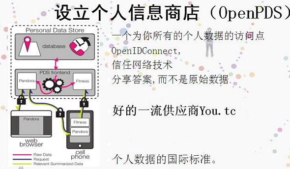 归根到底,彭特兰认为解决大数据的隐私性问题,需要解决数据的控制权,而这也同时需要一个可靠的平台能解决用户管理个人信息的能力。