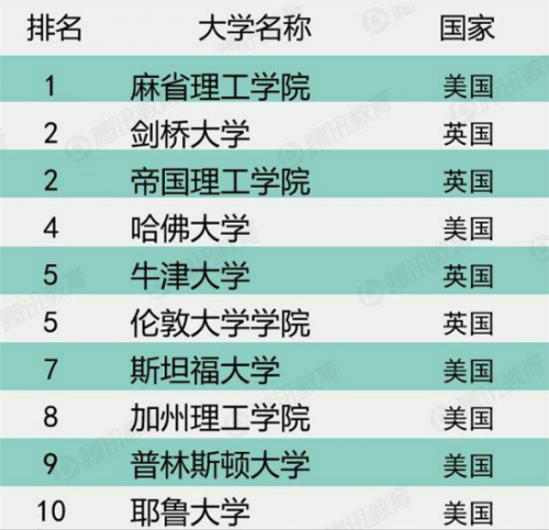2014QS世界大学排名发布,英美高校依旧占领前十强。麻省理工学院蝉联第一,哈佛大学跌至第四,帝国理工学院挤入前三。就中国内地大学来看,27所大学进入QS榜单,清华大学第一次以排名47位登顶QS世界大学排名中中国大陆大学之首,它超过了未能进入前50的北京大学。