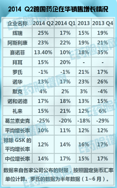 如果说今年第一季度跨国药企在华增长较慢,那么第二季度有的企业加快了增长速度,而有的企业却在减速。