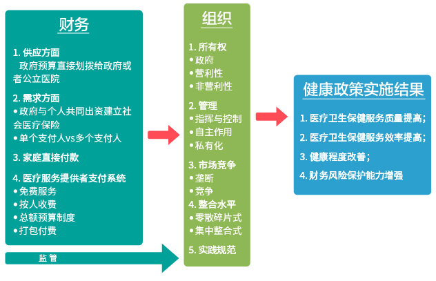 下图展示了我们提议中系统性方案的框架结构。我们首先讨论政府为了改进医疗卫生保健提供服务的组织结构会做什么,以及为了进一步强化改进会如何利用财政激励和供应者支付激励方式。图片中,我们标明了多种能够影响医疗卫生保健提供系统变化决定的政策,它们有的可以单独发挥作用,有的可以同其他政策结合一同发挥作用。医疗系统的组织特征(比如所有权、管理市场竞争、整合水平、执业标准等)会影响医疗卫生保健提供服务的实践。另外,政府对医疗卫生保健的财政支持方式和对服务供应者的支付方式能够从本质上影响治疗决定,因为这些方式能够为供应者创造不同的激励。政府需要颁布执行法规,但这些法规的效果往往会因为执行不利而打折扣。