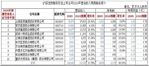 基于以上信息及对上市公司财务数据的分析和判断,我们认为沪深生物制药行业10大上市公司,2010年的整体业绩将表现优异。