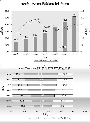 素有“天下黄河、唯富一套”之美誉的巴彦淖尔市,是全国、全区重要的商品粮生产基地,在以粮为纲的年代也曾辉煌过。但是,随着全国工业化大潮的推进,由于长期倚重于农牧业经济发展,工业基础薄弱,缺乏主导产业带动,巴彦淖尔市和全国其他传统农牧业地区一样,渐渐失去竞争优势,与自治区的快速发展态势相比明显落后了。巴彦淖尔市自2000年起的3年时间,工业增加值徘徊在20亿元左右,2002年工业增加值仅占地区生产总值的15.7%,财政收入仅为9.3亿元,处于“大农业、小工业、穷财政”的状态。面对这样严峻的形势,2004年开始,巴彦淖尔市大力实施经济结构转型战略,加快由农业主导型经济向工业主导型经济转变,把工业摆到了全局和战略的位置。2007年,根据党的十七大提出加快转变经济发展方式的新要求,巴彦淖尔市将经济发展的主导战略由经济结构转型,提升为经济结构转型升级。转型就是做大做强工业,提高工业在经济结构中的比重,促进三次产业结构更趋合理、更加协调;升级就是进一步优化产业内部结构,延长产业链条,提升产业层次。2009年,面对国际金融危机的冲击,巴彦淖尔市提出要继续坚定不移地实施经济转型升级战略,并赋予了转型升级新的科学内涵。经过几年的努力,全市引进和建设了一批大项目,高标准规划建设了几个工业基地,初步形成了农畜产品加工、矿山及冶金、化工、电力四大优势特色支柱产业,工业经济连续多年保持高速增长。2004年,二产比重首次超过一产。2006年,工业比重超过一产。2009年,全部工业增加值达到232亿元,比2003年增长了5倍,年均增长34.8%,占GDP的比重提高到45.6%,比2003年上升了27.4个百分点,实现了由农牧业主导型经济向工业主导型经济转变的历史性突破。在工业经济的强劲带动下,全市总体面貌发生巨大变化。2003―2009年,全市生产总值由151亿元增加到509.9亿元,年均增长19.6%,高于全国、全区平均水平。财政收入由11.5亿元增加到55.8亿元,增长5.1倍。三次产业结构由35:30:35演进为19:55:26。城乡居民收入分别由6112元和3015元增加到13893元和8066元。科技、教育、文化、卫生等各项社会事业全面进步。