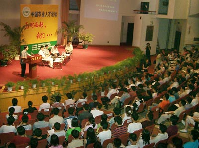 中国农业人才论坛是由团中央青农部中国青年农民科技之家联合我校团委主办,农村发展研究会承办的大型学术交流活动。自2002年以来,已成功举办了九届,主题紧跟时代并与农业人才即大学生的使命息息相关,组织方根据主题邀请相关农业科学家、政府官员、社会学者、企业界人士、杰出农民等群体代表参加论坛,并做主题发言和互动访谈。