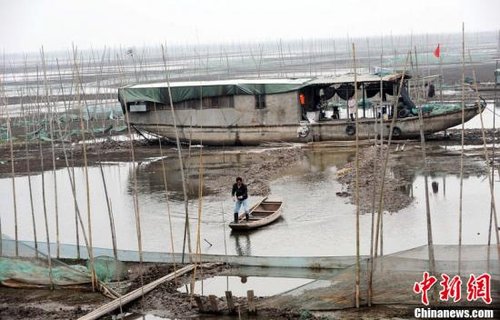 2011年5月24日,洪湖水位低落,岸边干涸见底。今年以来,洪湖遭遇70年一遇的特大干旱,降水量与往年相比减少七成,53万亩洪湖水面减少了14,湖水最深处只有30多厘米。干旱不仅让水产养殖遭受灭顶之灾,更让洪湖湿地的生态受到非常严重的打击。(图)