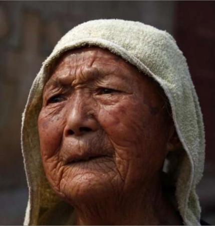 湖北一位95岁的渔民无奈地看着只剩下一点点水的洪湖。