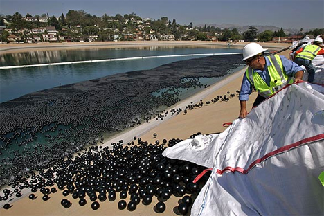 洛杉矶把塑料球倒入伊凡霍伊水库以防止溴酸盐生成。