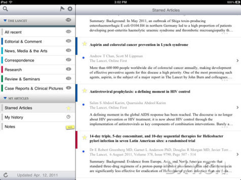 《柳叶刀》,世界领先的独立综合性医学期刊,今日发布了其首款为iPad设计的应用程序,目前可在App商店购得。柳叶刀App是一个开创性的,基于文章导航的应用程序。它的出现使医疗专业人员可以快速有效得利用iPad获得他们所需要的信息。