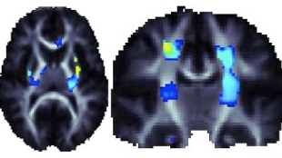 脑部扫描发现基因变体改善了大脑的完整性(图中黄蓝区域)