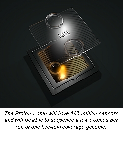 SeqAnswers.com论坛预计Ion Proton将于2012中期发布的第一代测序芯片能测量3到6个外显子(基因组中能够编码蛋白质的那部分)。Life Technologies公司自己则宣称今年年底将发布的二代测序芯片Proton II能够完成全部基因组测序。Life Technologies公司期望Ion Proton能在诊断测序市场分得一杯羹,因此他们计划于年底向美国食品和药物管理局提出申请,以求能把Ion Proton列入医疗器械名单。诊断性测序市场规模虽小,但发展迅速,目前被Illumina公司垄断着。