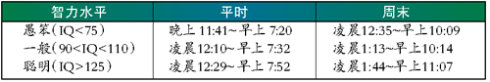流言中出现的表格就来自于这项研究的数据,如果认为可以根据作息时间来推测智商,显然是对金泽哲研究结果的一个误读。
