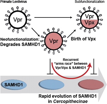 然而,HIV-1并不编码Vpx,但是它编码一种相关的蛋白Vpr。Emerman和同事们试图解决这种问题:HIV-1是否丧失降解SAMHD1的能力或者是否只是通过少量编码Vpx的慢病毒而获得这种能力。