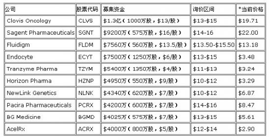 其它的公司就没有这么好了。大多数公司都低于他们的开盘价发行,而且很多时候是明显低于它们的目标区间。这段日子以来,不少生物公司不是不能上市,而是不愿意采取大幅降价的方式上市,大多数的药物开发公司不愿意做这样大的牺牲。
