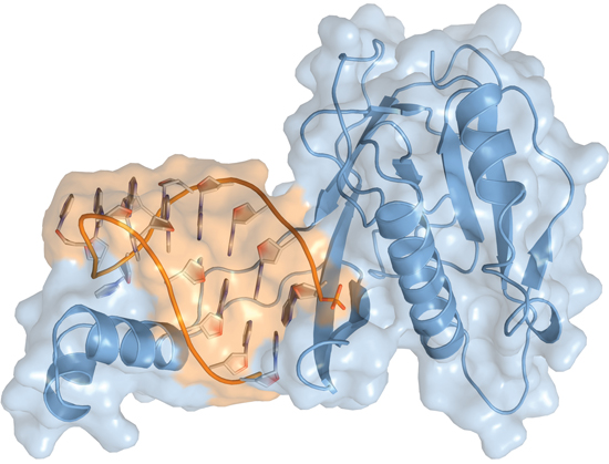 尽管一些CRISPR–Cas系统需要多种蛋白才能发挥功能,在许多细菌中发现的II型系统却只需利用一种内切核酸酶Cas9。该酶与导向RNA协同作用定位在PAMs保守序列限定的位点,裂解入侵DNA。为了形成功能性的DNA靶向复合物,Cas9需要两种不同的RNA转录物,crRNA(CRISPR RNA)和tracrRNA(CRISPR RNA)。然而,近期的研究表明,这样的双RNA可以重新装配成一种单导向RNA (single-guide RNA,sgRNA),其包含的序列足以编程Cas9,介导靶DNA双链断裂。