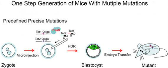 Rudolf Jaenisch教授实验室采用CRISPR/Cas技术绕过了胚胎干细胞操作过程,可快速而有效地建立携带多个基因突变的小鼠。这是CRISPR/Cas技术首次被用于多细胞生物的基因操作。