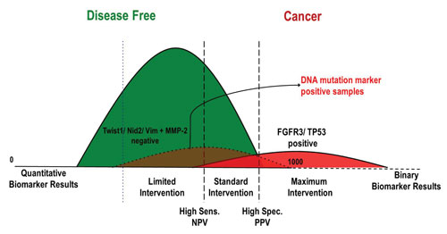 应用科学主任Cecilia Fernandez 称:“将高特异性的DNA标记分子和蛋白质标记分子(基于诊断测试发现的)结合后,基本上能把DNA标记分子呈阳性的样本对应为高风险群体以备医学治疗。此外,灵敏度提高的多分析物测试支持了较高水平的蛋白标记分子设置标准,从而让更高比例的群体被定义为无患癌风险群体(基于尿液检测),以避免进一步的检测和创伤性组织取样。”
