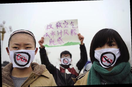 人们对雾霾天气提出抗议
