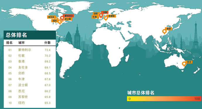 该研究得出了一些出人意料的结果。蒙特利尔排在第一,其次是伦敦、香港和多伦多。