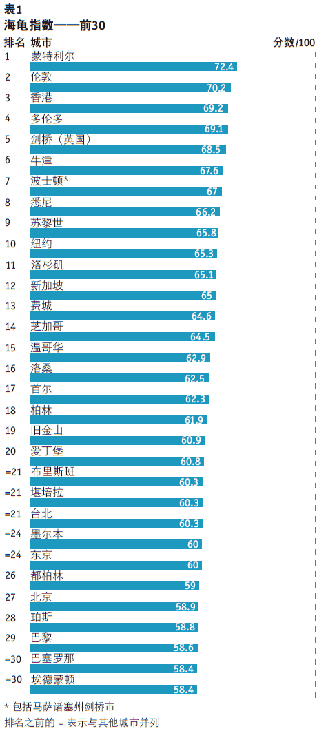 海龟指数通常不会说哪些大学是最好的,该指数会对哪些城市能为大学学习提供最佳的整体环境进行评估。