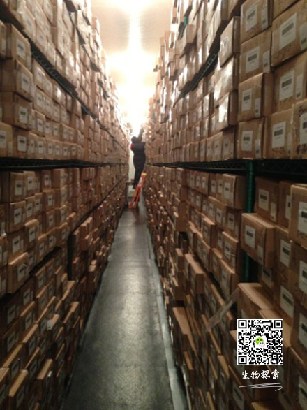 库里有七个冰柜,每个冰柜都是约一个篮球场的大小,冰柜里高高地堆积着盛着黄色或粉红色血清的小纸盒,众所周知,血清是一种含有丰富抗体和蛋白质、但不含细胞的液体。冰柜里温度常年保持在-30摄氏度左右,要求进入的工作人员穿防护服、戴帽子、手套和口罩。还有四个空冰柜,存放在室温下,等待着未来的样本。