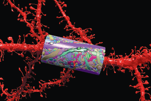 近日,在一场美国神经科学学会(Society for Neuroscience)会议上,总共大约3万名参会者中就有近5000人涌入一个礼堂,观看美国哈佛大学神经学家Jeff Lichtman的研究成果——一些盐颗粒大小的小鼠大脑组织块的结构。当它们被放在投影屏幕上并被Lichtman不断放大直至填满了投影屏幕后, 一些圆柱体状的组织以史无前例的清晰度被呈现了出来: 680条神经纤维,79个树突,以及774个神经突触,通过这些结点,化学信号从一个神经元传到另一个神经元。