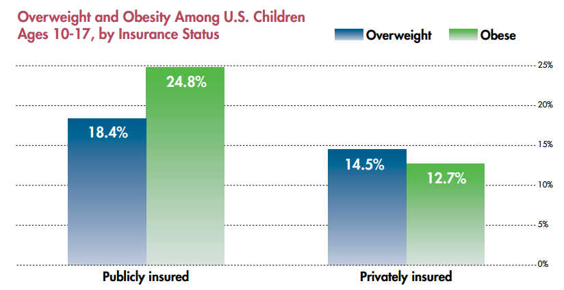 10-17岁不同投保的青少年超重及肥胖率(图片来自nccp.org)