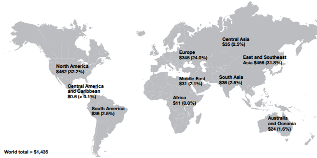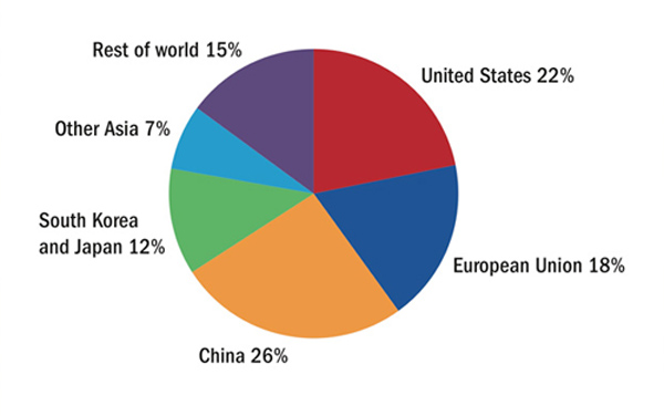 不过,美国在年度全球研究开支中的占比大幅下滑,从10年前的37%降至了2011年的30%。至于欧洲,则是从当时的26%跌至22%。