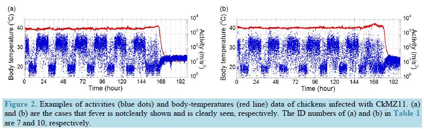 研究中提到的原理图及一只感染了禽流感的鸡的活动检测如下: