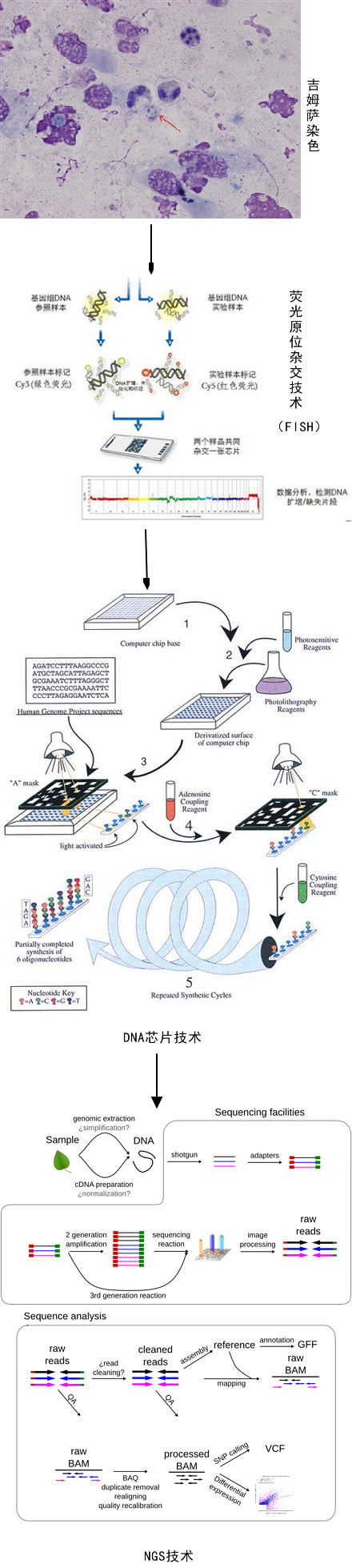 DNA芯片的引入实现了拷贝数变异和染色体结构变化的检测,其分辨率低至5-10 kb。