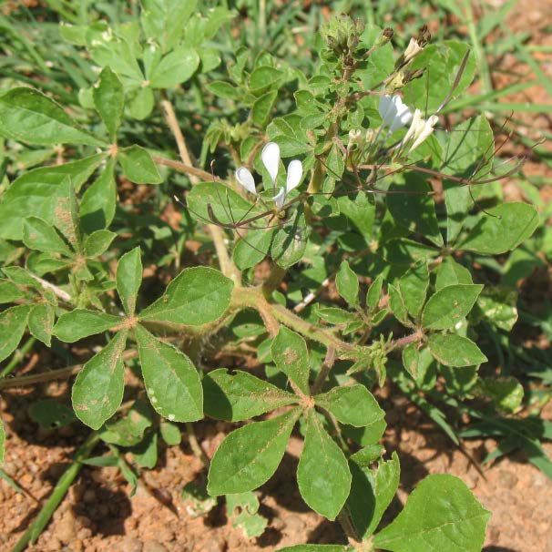 【花白菜】:属于醉蝶花属,叶子呈掌状,叶子藤蔓有3到7片,花呈蜘蛛状。