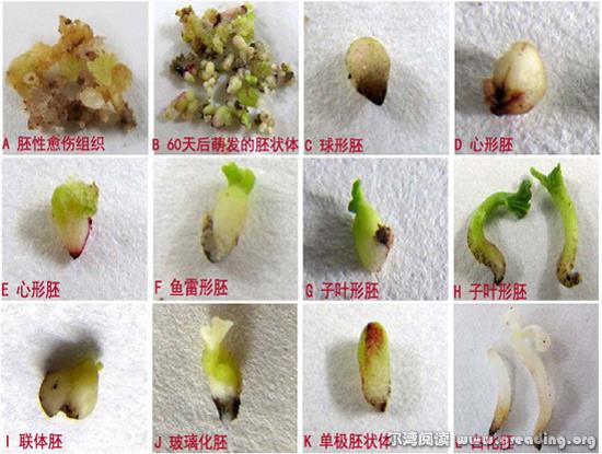 图为:棉花转化过程中的愈伤组织及不同类型的胚状体