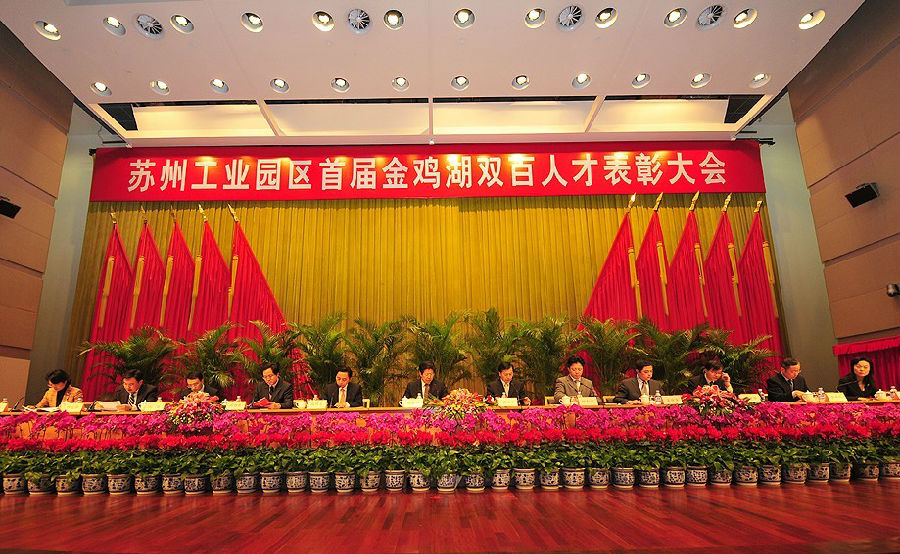 2011年1月12日下午苏州工业园区“首届金鸡湖双百人才”表彰大会,在园区管委会现代大厦召开。江苏省委常委、苏州市委书记蒋宏坤参会并作报告,苏州市委常委、组织部长王立平,市委常委、园区工委书记马明龙等出席会议。
