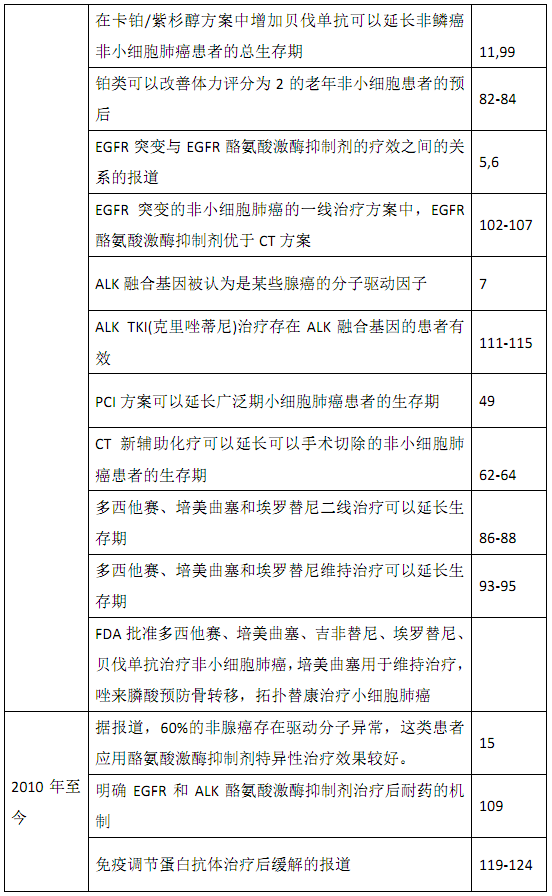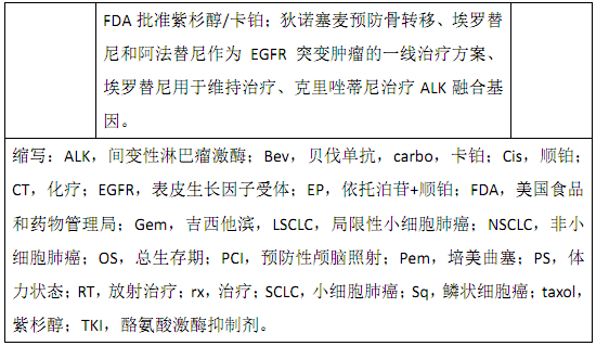 表1 肺癌治疗进展的总结