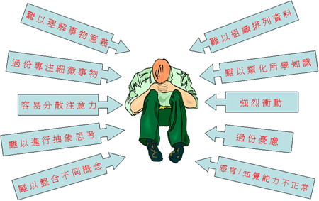 自闭症患者往往在三个方面有不同程度的问题:社会交际和理解;重复的行为和兴趣、以及语言和沟通。