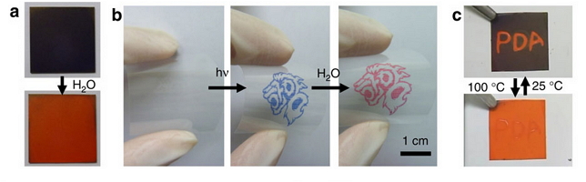 研究者开发出了一种聚合物,当接触到水时,这种聚合物会永久性地从蓝色变成红色,甚至于人指尖上微米大小的汗腺毛孔分泌出的水分就能使其产生反应。而这使得那些分泌汗液的毛孔与其周围的相对干燥的区域区分开来。这些位于微小边界处的汗腺孔能够帮助构建指纹,通过为指纹着色展现出更细致的信息,研究者将这一结果在线发表于近日出版的《自然—通讯》上。