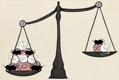 马萨诸塞州北安普顿史密斯学院神经内分泌学家Annaliese Beery认为,当前真的缺乏对雌性生理的了解。在2010年发表的一篇论文中,她和加州大学伯克利分校的Irving Zucker调查了大约2000个动物实验。他们发现,10个学科中有8个喜欢选择雄性动物做实验,而且这种偏见在神经科学研究中最为明显。同时,每1个只使用雌性动物的试验,便会对应着5.5个仅使用雄性动物的试验。更加令人吃惊的是,在发表于三大顶级免疫学期刊的论文中,有75%甚至没有说明研究使用的动物是雄性还是雌性。