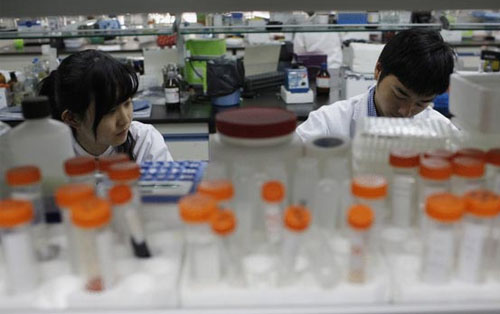 下图:研究人员正在中国南京大学的一间实验室里准备药品。为了寻求更加便宜的试验渠道,制药商让药品临床试验变成了全球性的生意。