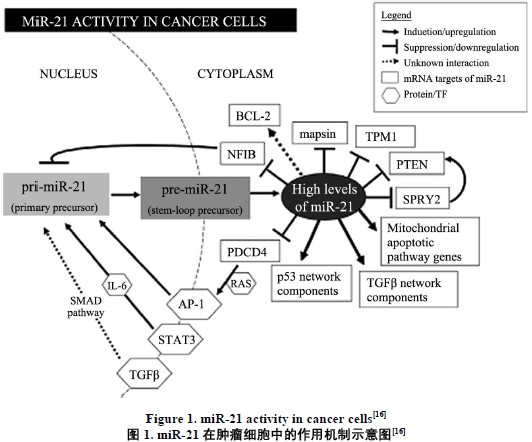 微小RNA(miRNA)是一类内源性小分子单链RNA,在细胞增殖、分化、凋亡尤其是肿瘤发生发展等生理病理过程中发挥重要作用。miR-21是研究最早也是较特殊的miRNA之一,其在几乎所有的实体肿瘤包括胰腺癌中高表达。